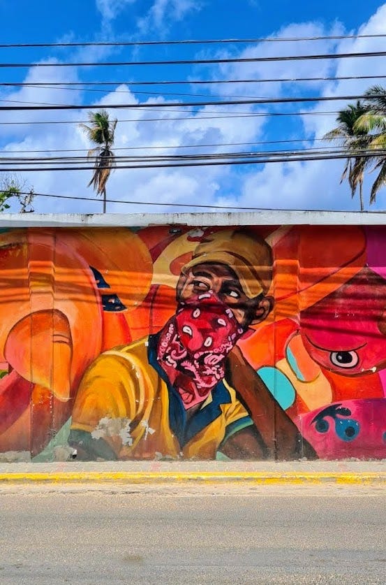 Mural of a vendor boy who sells used objects on the beach of the Las Terrenas.