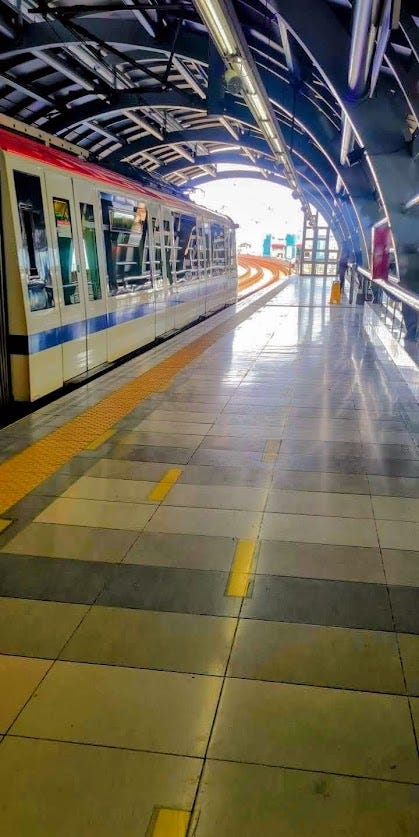 Santo Domingo trains do not collect power from a third rail similar to the USA. The trainsets collect their power from an overhead line system. See picture below: